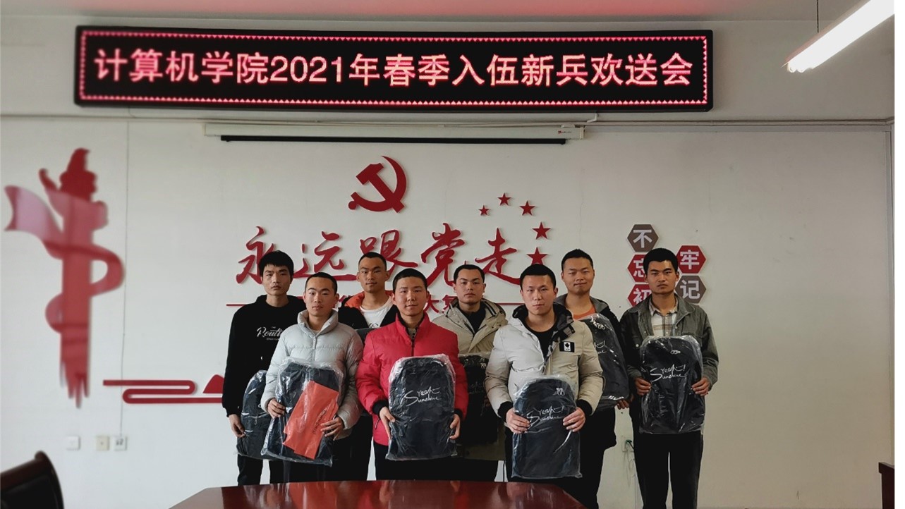3月8日下午,十大买球的正规网站在A-06 309会议室召开2021年春季应征入伍新兵欢送会,党总支副书记杨聪聪、辅导员杨正平、张凯、牛培全参加欢送会。