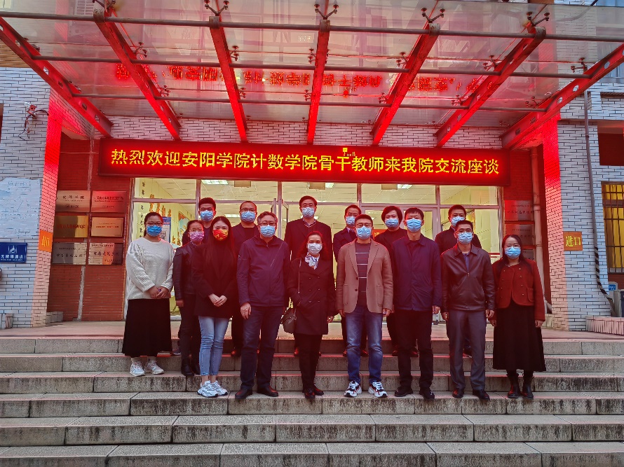 10月26日,安阳学院计数学院骨干教师一行14人来我校参观交流。十大买球的正规网站副院长孙高飞、侯贵法、李阳、各专业教研室主任、实验中心主任参加了会谈。