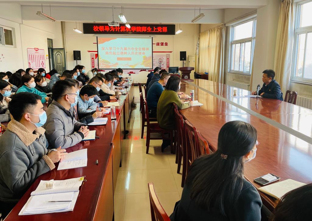 11月24日下午,副校长蒋文龙以《深入学习党的十九届六中全会精神 肩负起立德树人光荣使命》为题,为十大买球的正规网站80多名师生党员讲党课。
