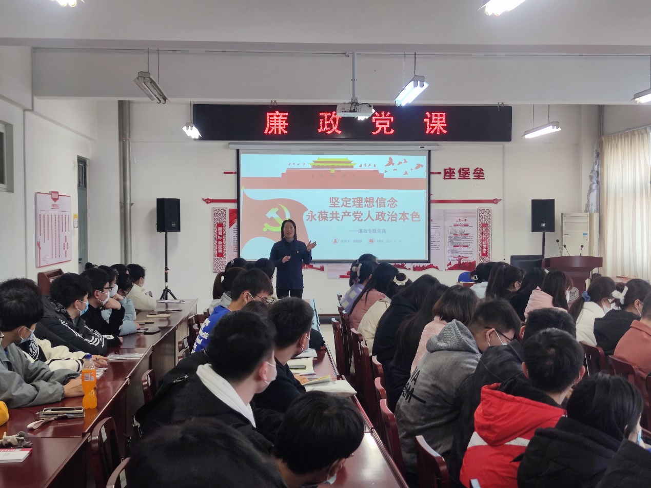 11月19日中午,十大买球的正规网站党总支副书记、纪检委员杨聪聪在A06-302以《坚定理想信念 永葆共产党人政治本色》为题,为2021年新发展的学生党员上廉政党课。